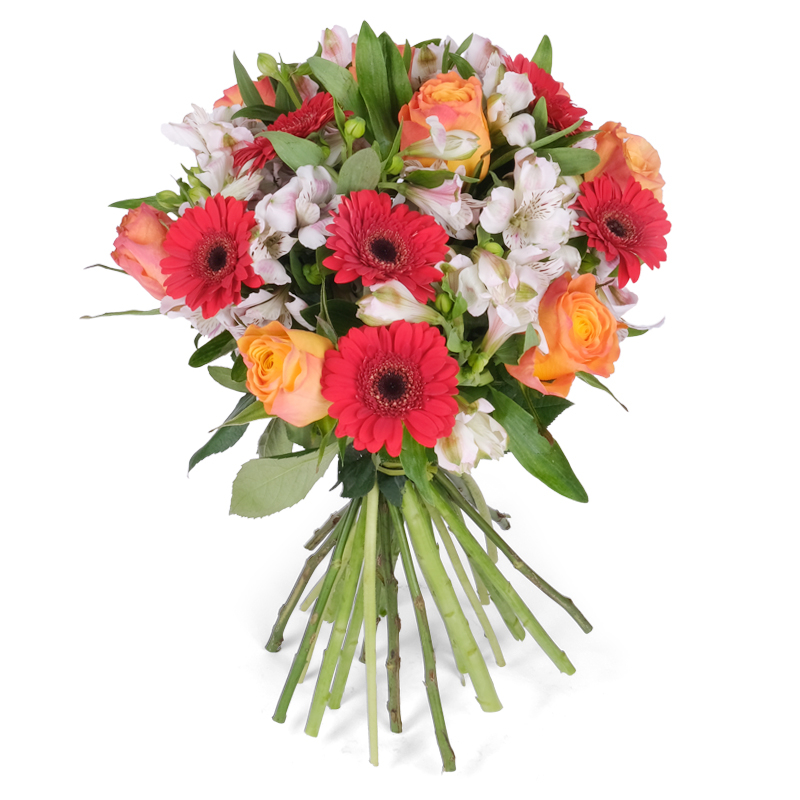 Zawsze świeże kwiaty                                      Bukiet stworzony z myślą o kobiecym pięknie. Róże wnoszą romantyzm, gerbery dodają radosnego nastroju, alstromerie tworzą eleganckie dopełnienie. Kompozycja pełna naturalnego wdzięku i energii na urodziny, imieniny czy w ramach podziękowania!